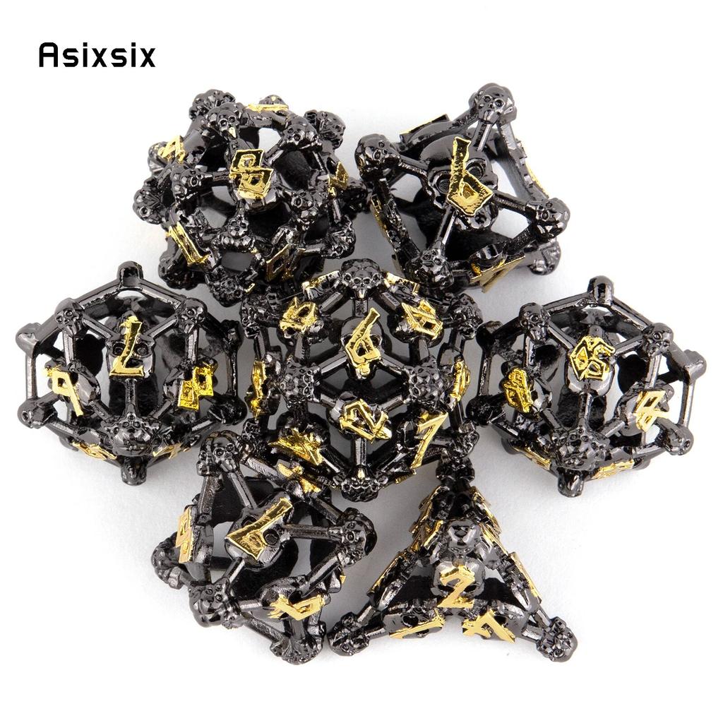 7 Pcs Black Yellow Skull Head Metal Dice Hollow Metal Polyhedral Dice Set Suitable for Role-Playing RPG Board Game Card Game