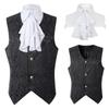 - Medieval tailcoat jacket featuring standing collar, sleeveless and irregular hem, knee length, double-breasted closure.