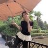 Women's Short-sleeved Shoulder T-shirt Stereoscopic Bow Korean Sweet Sister No Waist Top
