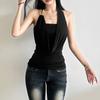 European & American Women's Fashion 2025: Versatile Gold-Tone Embellished Halter Neck Knitted Top
