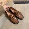 2025 new autumn and winter leather platform loafers women's round head metal buckle British style Shilin small leather shoes