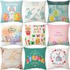 Throw Pillow Case Rabbits Colorful Eggs Carrots Home Decoration Polyester Peach Skin Easter Party Pillow Cover for Indoor