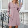 Women's Autumn And Winter Fashionable And Casual Solid Color V-Neck Button-Down Long Sleeve Dress