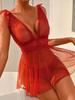 Lingerie erotica da donna, sexy, in pizzo, con spacchi, camicia da notte, due pezzi, intimo completo