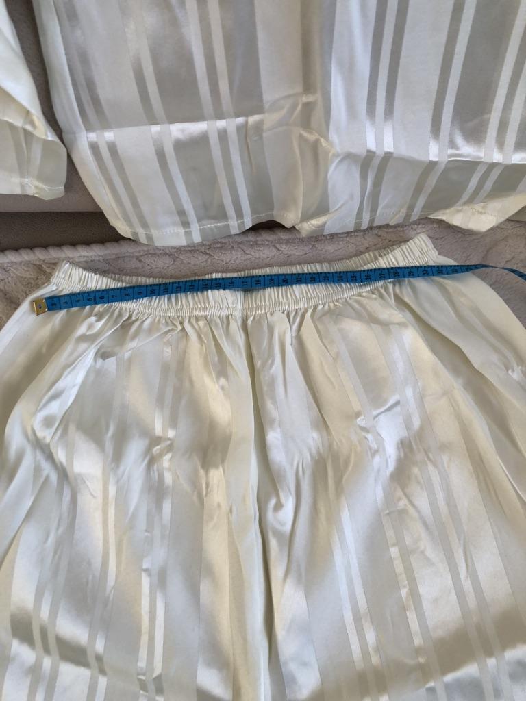 ქალის ზოლიანი პიჟამის კომპლექტი მყარი ფრანგული აბრეშუმის ატლასის პიჟამა ორ ცალი კომპლექტი კომფორტული სახლის პიჟამა