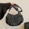 ქალის დიდი ტევადობის ჯინსის ჩანთა, ერთმხრიანი, გადასაჯდომი ჩანთა