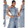 Spring 2024 New Denim Skirt Set European and American Leisure Stretch Denim Denim Set
