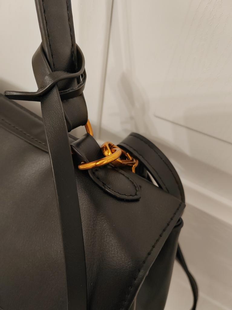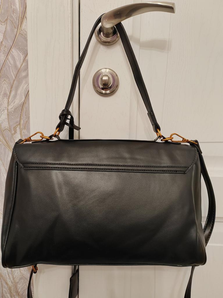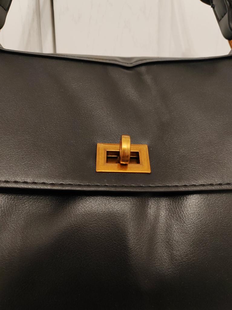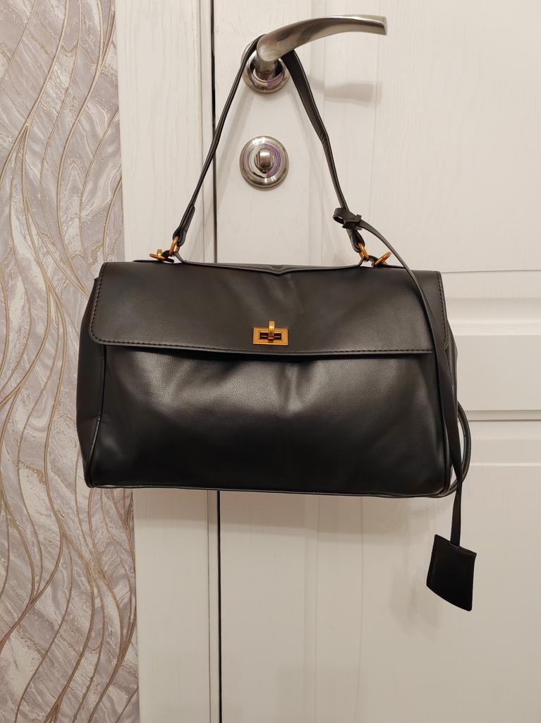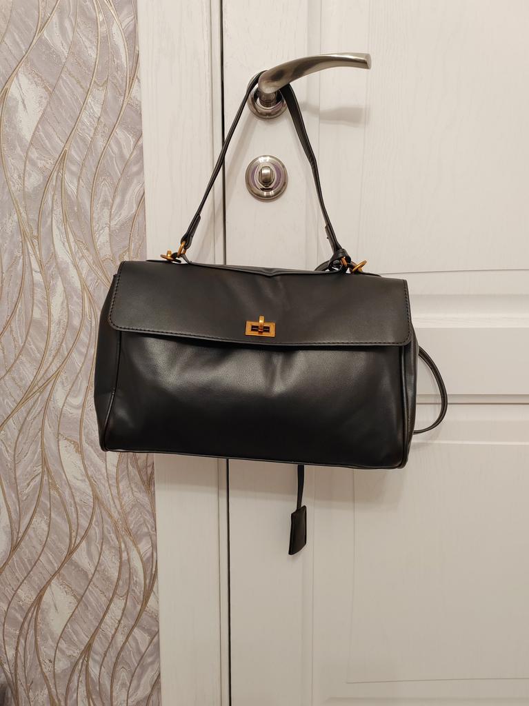 Классическая чёрная сумка❤️ Лаконичный, структурированный дизайн и несколько ключевых деталей делают её стильной и практичной. Сумка имеет прямоугольную форму с плоским дном, благодаря чему она будет стоять вертикально. Она сделана из искусственной кожи с лёгким блеском. Золотистая фурнитура добавляет элегантности и красиво контрастирует с чёрным материалом. У сумки есть короткие ручки, чтобы носить её в руке, а также длинный, регулируемый плечевой ремень для ношения через плечо или на плече. Сумка довольно вместительная. Её классический дизайн позволяет сочетать её практически с любым образом, от делового наряда для офиса до повседневного стиля для прогулки в парке. Удачных покупок ❤️ Ваша Вика 😊