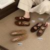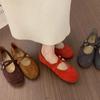 Retro red round head shallow mouth flat sole shoes women's 2025 new spring one pedal with skirt Mary Jane shoes
