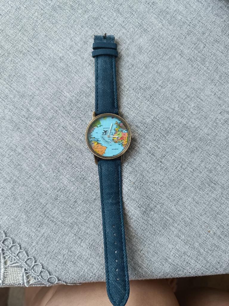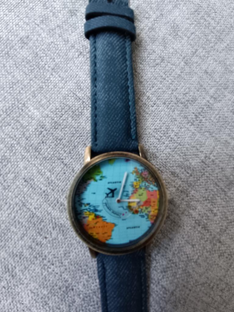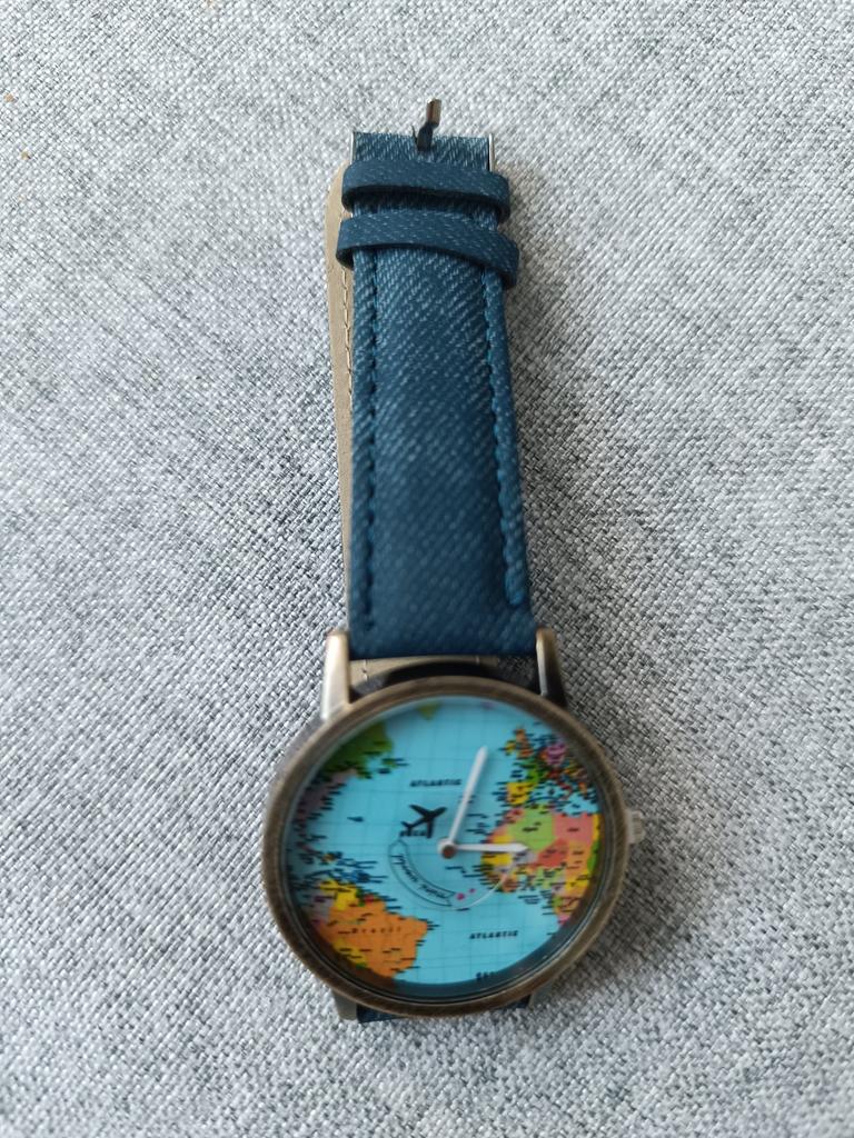 Gražus laikrodis su pasaulio žemėlapiu.