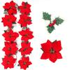 2 metrų dirbtinė kalėdinė puansetijos girlianda su raudonomis uogomis ir bugienių lapais su LED lempučių stygomis Kalėdų dekoravimui