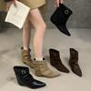 2025 new fashion design khaki suede leather buckle strap pointed toe boss boots punk style goth square heel women shoes