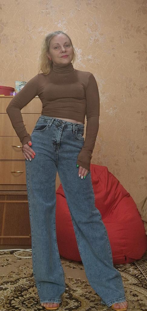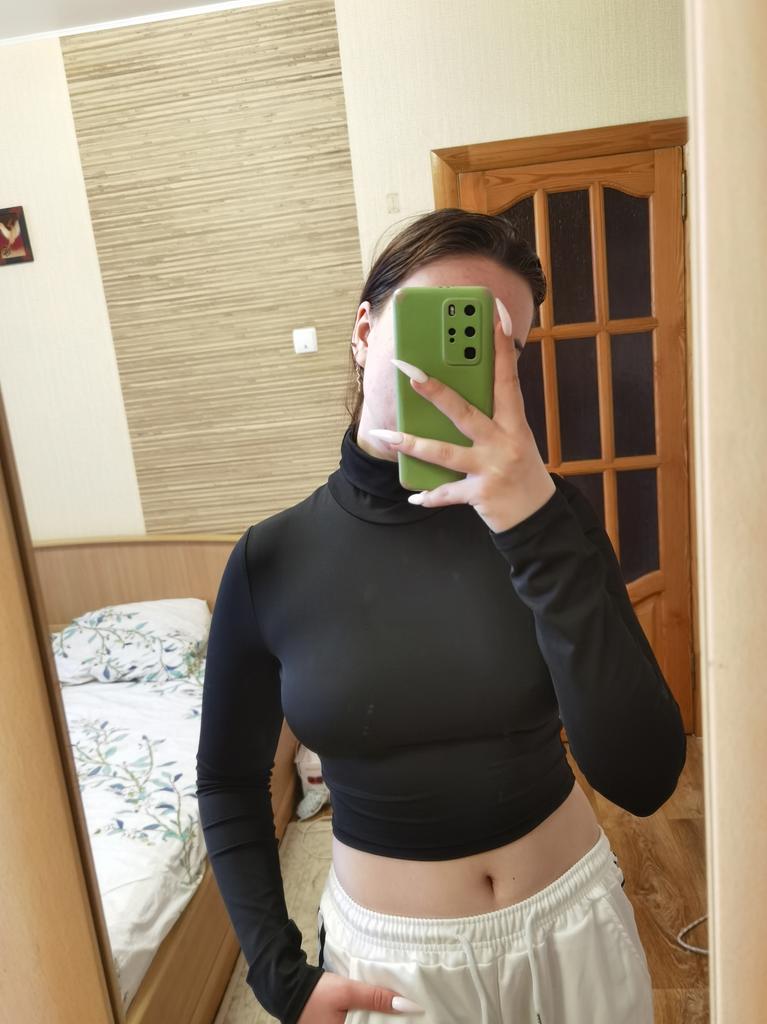 Turtleneck beskåret. Høyden min er 156 cm. Brystomkrets 94 cm Midjeomkrets 74 cm.