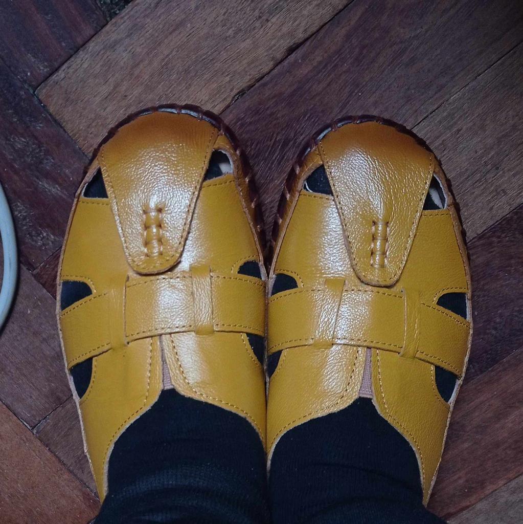 Damesko i ekte skinn for sommer Komfort Myke såler Anti-skli flate bunner Middelaldrende og eldre sandaler for kvinner og mødre