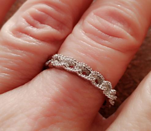 Veldig delikat vakker ring, uvanlig metall i fargen, ser ikke billig ut, jeg liker den, takk!