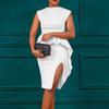 Lav krage hofteomslag Ermeløs front delt kjolekjole volangdekor Bodycon Midi-kjole Dameklær