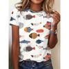 T-skjorte T Fisk Akvarelltrykk Dame Casual Mote T-skjorte Topp Kvinne Dame Klær Kort Erm Grafisk T-skjorte