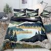 Mountain Duvet Cover Set Forest and Bright Moonlight Elk Landscape Mountain Bedding Set King Size Soft Polyester Comforter Cover