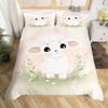 Cartoon Sheep Duvet Cover Set Cute White Sheep Flowers Pattern King Queen Full Size for Kids Boy Girl Gift Polyester Bedding Set