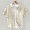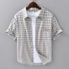 Harajuku Style Short Sleeve Plaid Shirts for Men Summer Tops Daily Men's Casual Shirt Youth Slim Fit Double Pockets Pure Cotton Shirt