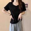 Draped Clavicle Short-sleeved T-shirt for Women In Summer Korean Style Slim Base Shirt Casual V-neck Top