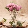 Ins Nordic Style Flocked Peony Flower High Imitation Home Living Room Decoration Fake Flower Dew Lotus Simulation Flower