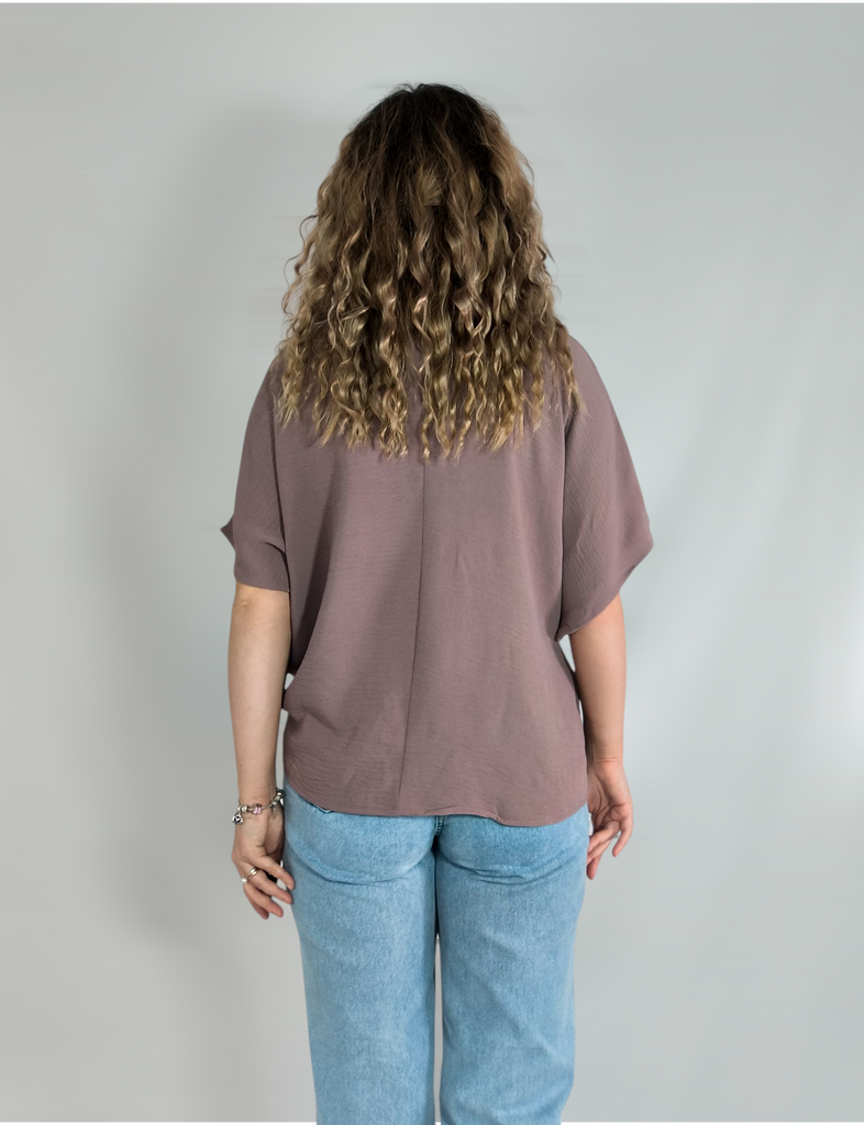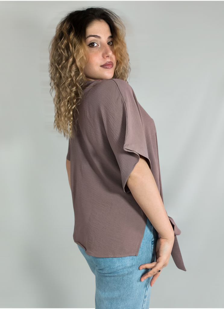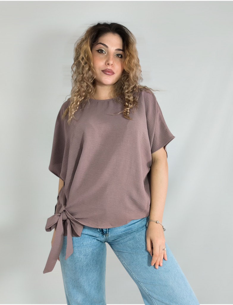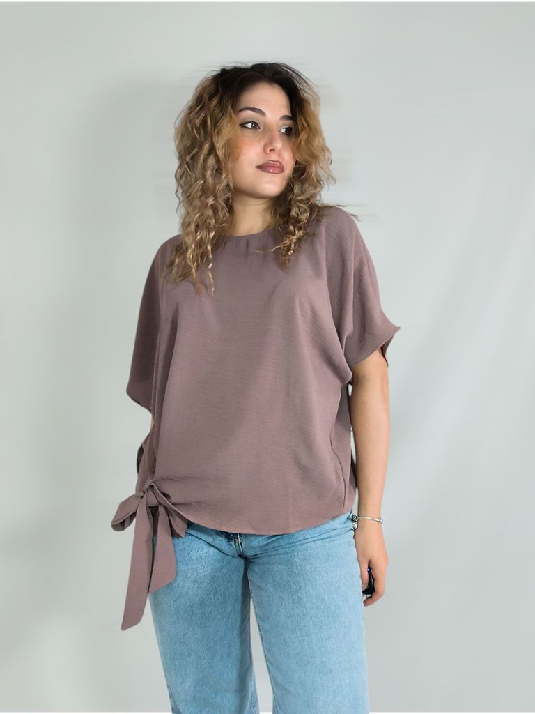 Sommer-T-skjorte for kvinner Ensfarget flaggermus-ermet Hem Knot Løs Kortermet Topp
