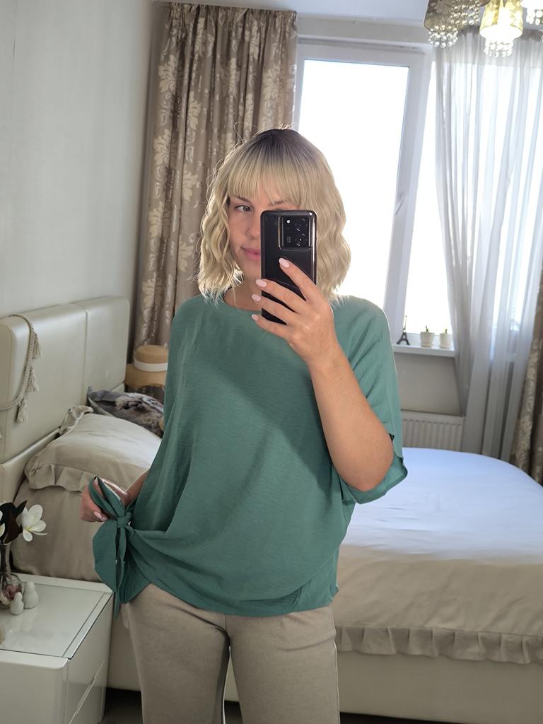 🛍️Oversized t-skjorte for kvinner🛍️ ✨Denne skjorten ser så vakker ut og har en spesiell stil og den er behagelig på kroppen og jeg elsket dem veldig!🤩 ✨Blusen er stor og vid med rund hals, korte flaggermusermer med en søt knyting på siden. ✨Kan bestilles i størrelsene S-XL ✨Passer for sesongen: sommer, vår ✨ Jeg fikk dem akkurat i den størrelsen og fargen jeg ønsket. ✨Kan bestilles i fargene: grønn, svart, blå, lilla/grå, kaffe ✨Produktet kom med rask og beskyttet levering. Var anmeldelsen nyttig for deg? Lik og følg meg for flere anmeldelser.
