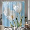 Pink Tulip Shower Curtain Set Bath Decor for Kids Bathroom Waterproof Fabric with Hooks (White)