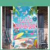 CSFOTO 7x16ft Hei Sommer Garasjeport Dekorativ Banner Blå Himmel Strand Tropisk Palme Garasje Dekorativt Veggmaleri Tapet Aloha Luau Tema Sommer