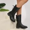 Mid-tube Boots Women's Autumn and Winter New Round Toe Soft Leather Soft Sole Side Zipper Non-slip Block Heel Boots