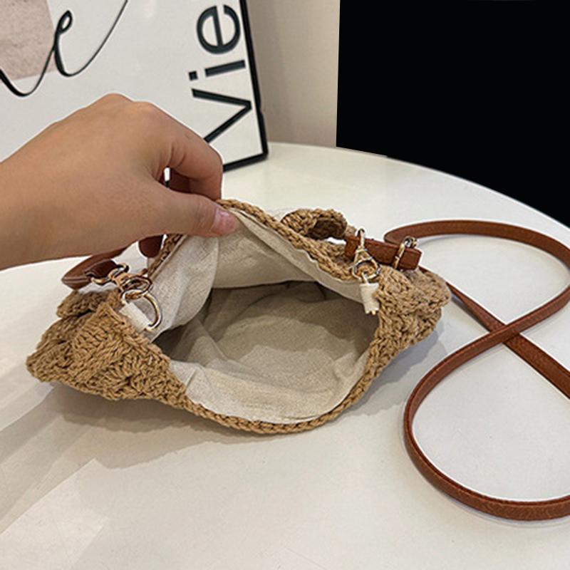 Vintage Woven Straw Shoulder Bag New Vacation Style Round Summer Beach Bag Fashion Crossbody Bag