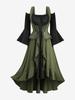 Rosegal Plus Size Flowers Print Lace Ruched Buckle Lace-up Flare Sleeves High Low Dress