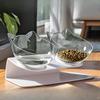 Cat Bowl Plastic Slanted Neck Pet Feeding Dish with Double Bowls Non-Slip Easy Clean Anti-Spill Water Food Container