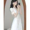 Kvinners Sommer Søt Mesh Blondekjole Hvit Midi Puffermer Kjoler