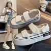 Canvas half slippers women's spring 2025 new thick-soled Velcro white shoes two wear one pedal casual board shoes
