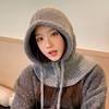 Autumn and winter hats women's fashion versatile balaclava hat scarf integrated warm knitted wool hat