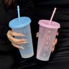 1PC Bow Printed Plastic Water Bottle with Straw and Lid Coffee Cup Tumbler Beverage Transparent Cold Drinks Beverage DrinkingCup