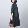 Moda Elegante Vintage Plus Size Vestido Jeans Feminino Verão Manga Longa Oversized Vestidos Casuais Femininos Bolsos Sólidos Solto Vestido Midi 1004