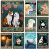 Placas de lata de metal para gatos sem café, sem trabalho, presente para amantes de gatos, placa vintage de metal, caverna do homem, bar, pub, clube, café, decoração de parede para casa