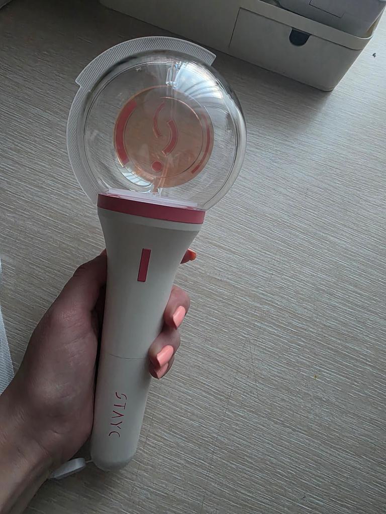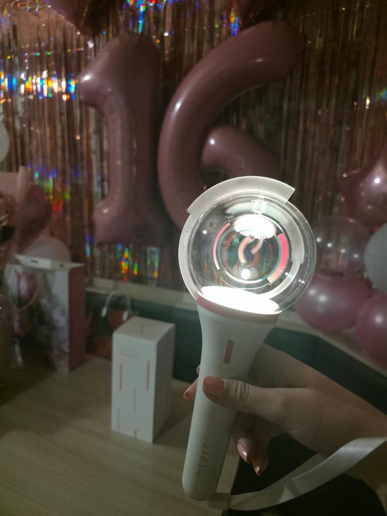 ура,лайтстик моих любимых девочек приехал!!! пишу честный отзыв,если у вас будут вопросы можете задать их в комментах или в тг(nxdeidle) подмечу несколько пунктов: 1) вскрывайте посылку очень аккуратно,потому что можно задеть основную коробку лайта,что я и сделала,поцарапав ножом 2) работает от 3 МИЗИНЧИКОВЫХ батареек,я сразу это не увидела и купила пальчиковые 3) лайтстик не имеет блютуза,работает при помощи нажатия кнопки,переключая разные режимы а так безумно рада покупке,так ещё и по скидке за 4600✨ стэньте стейси,будьте свитами и всё у вас будет чики пуки
