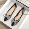 Fashion Ballet Flats Shoes for Women Fashion Rhinestones Bow Flat Footware Female Plus Size Moccasin Boat Shoes Chaussure Femme
