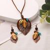 Богемний набір сережок та намиста з листям - Етнічна довга ланцюжок-светр прикраса для жінок